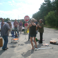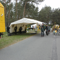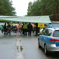 Bikerstammtisch vor der Zufahrt zum Erkundungsbergwerk Gorleben. Am letzten Samstag trafen sich ca.25 unentwegte Mitglieder des Verbandes der Motorradclubs Kuhle Wampe und Freunde, um die Zufahrt zum Erkundungsberkwerk von 11.00 bis 16.00 Uhr zu blockieren.